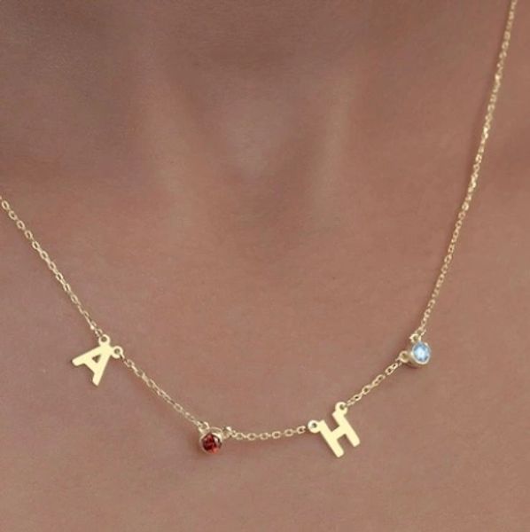 Beautiful initial handmade necklace with x2 initials and x2 birthstones, perfect to keep your loved ones close to your heart. Email your initial and birth month needed to hello@lovebejewelled.co.uk